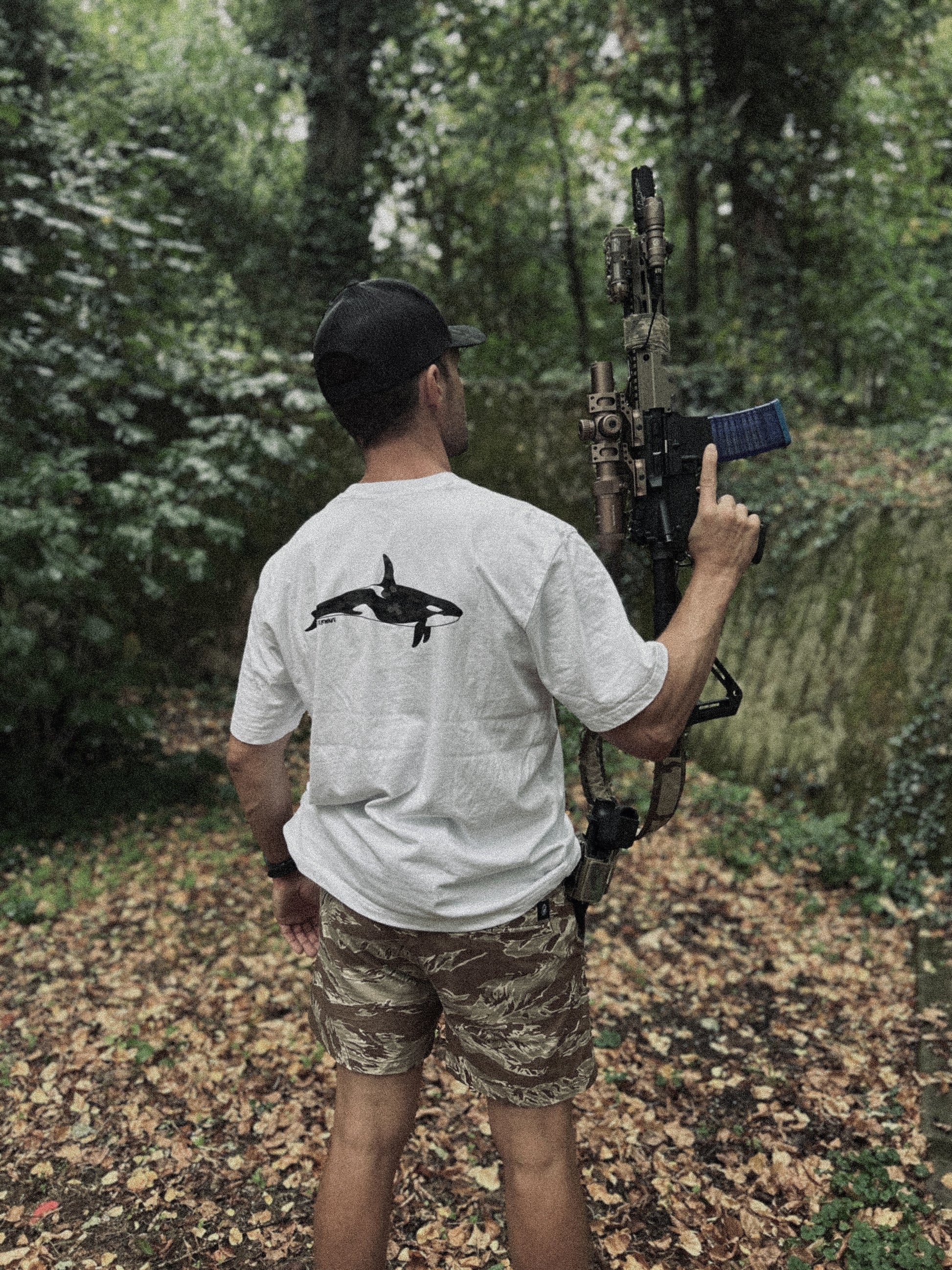 Crafted from 100% premium cotton (220g/m²), this heavyweight white tee delivers structure with comfort. On the back, theMulticam Black orca stands as a symbol of strength and dominance, while our logo in Multicam Black rests over the heart.